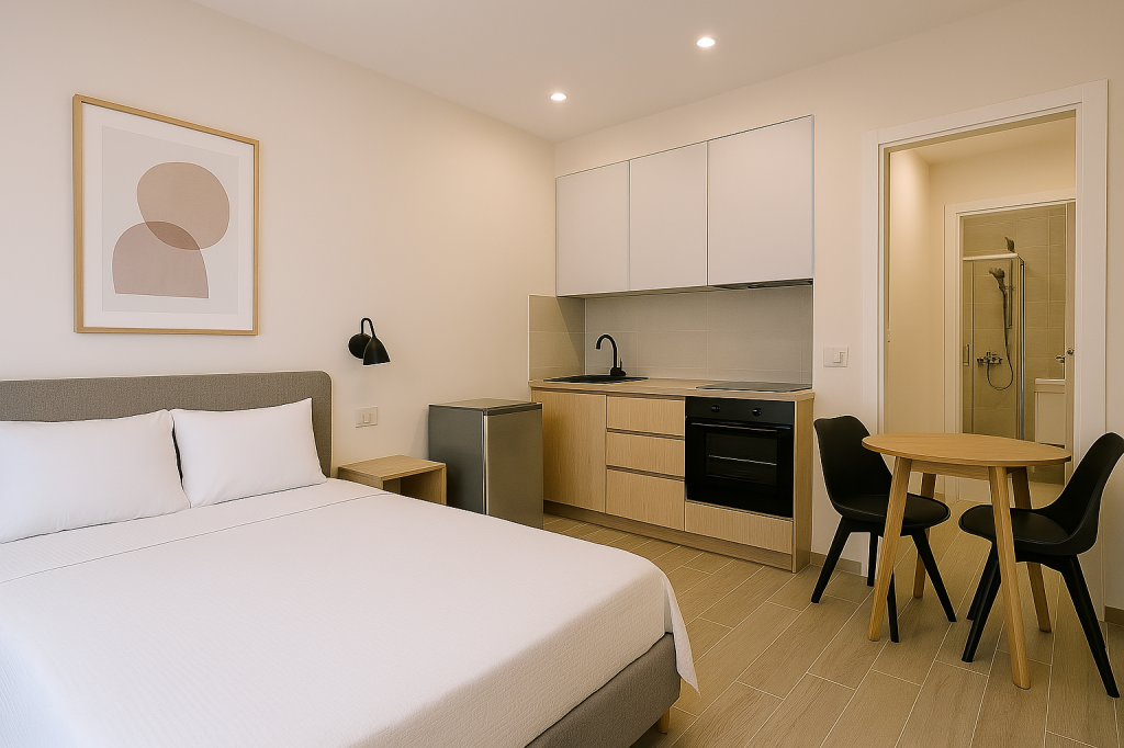 A stylish and cozy studio apartment, perfect for young professionals or students.